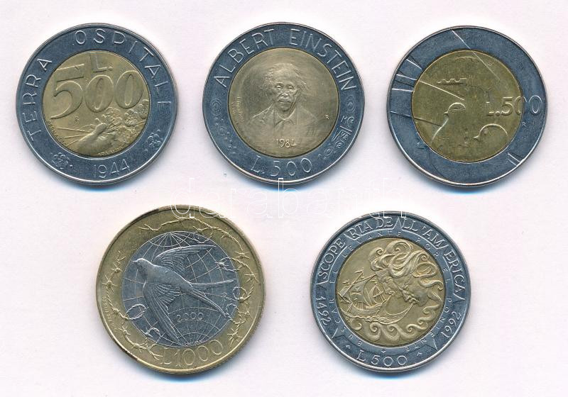 Leírás: San Marino 1984-1992. 500L (4x) + 2000. 1000L, közte "Kolombusz", "San Marino alapításának 1600. évfordulója" T:1-,2 patina