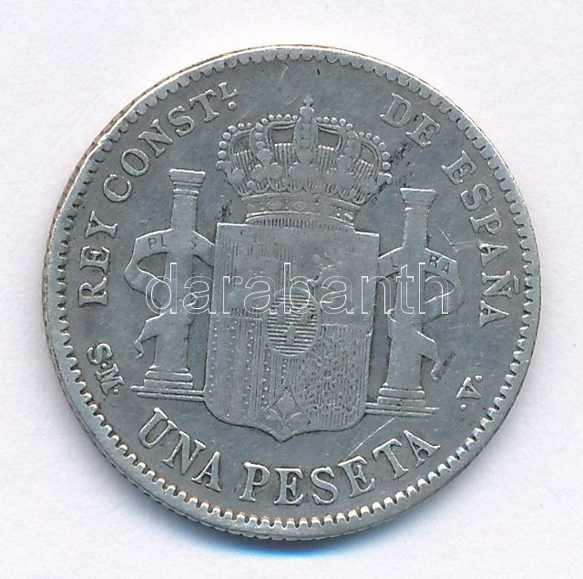 Leírás: Spanyolország 1903SM-V 1P Ag "XIII. Alfonz" T:3 Spain 1903SM-V 1 Peseta Ag "Alfonso XIII" C:F Krause KM#721