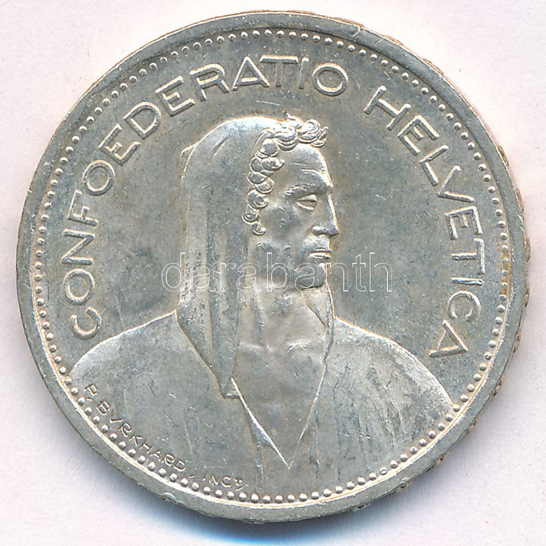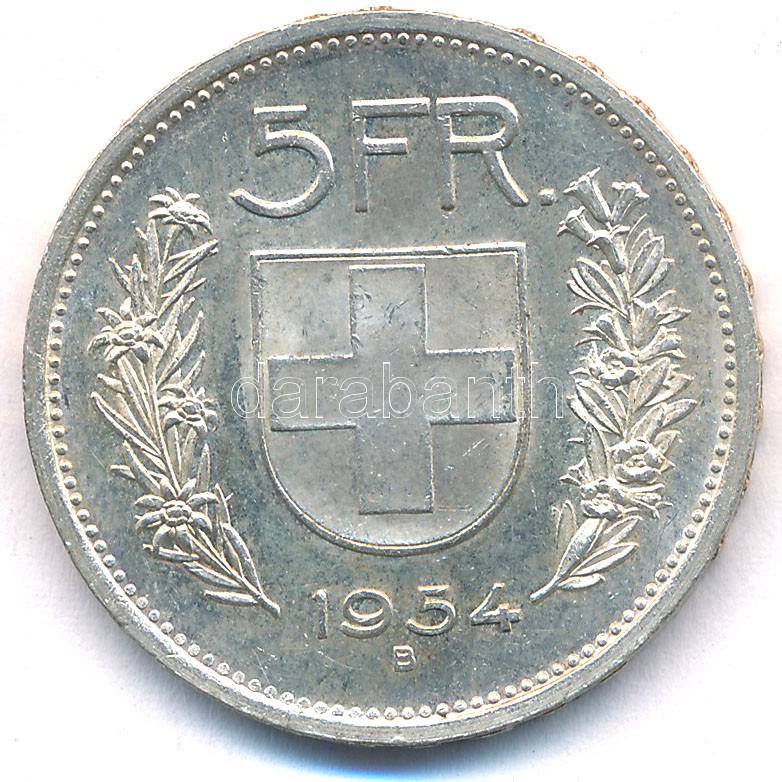 Kr... https://www.darabanth.com/hu/435-Gyorsarveres/435.0/Numizmatika/Kulfoldi-fem-es-ezustpenzek~1500031/Svajc-1954B-5Fr-Ag-T1-2--Switzerland-1954B-5-Francs-Ag-CAU-XF--Krause-KM2340~II2817685