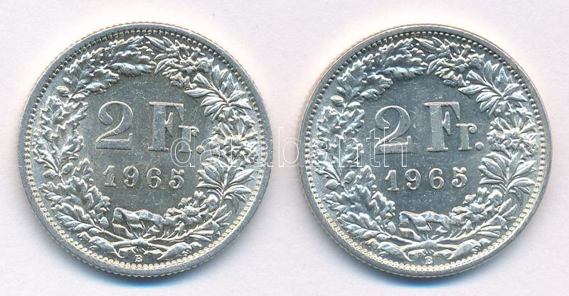 Leírás: Svájc 1965. 2Fr Ag (2db) T:1-,2 Switzerland 1965. 2 Francs Ag (2pcs) C:AU,XF Krause KM#21