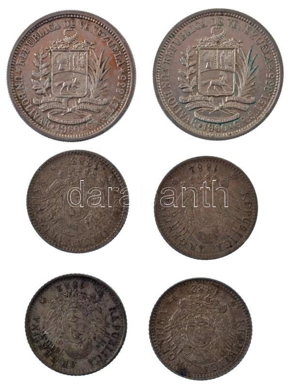 Leírás: Venezuela 1960. 1B Ag (2x) + Argentína 1882-1883. 10c Ag 4x) T:1-,2
