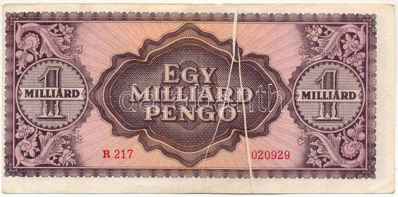 Leírás: 1946. 1.000.000.000P látványos nyomdahibával T:II-,III