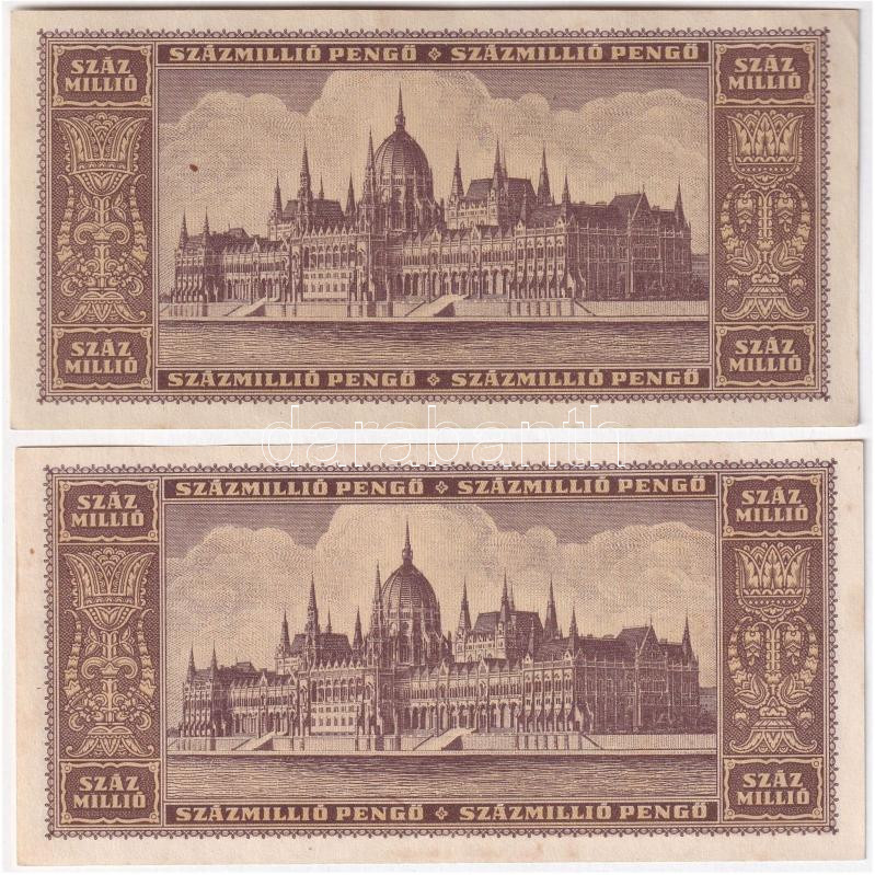 Leírás: 1946. 100.000.000P (2x) egyugrású sorszámkövető "P 22 052341, P 232 052343" T:II- szép papír Adamo P27