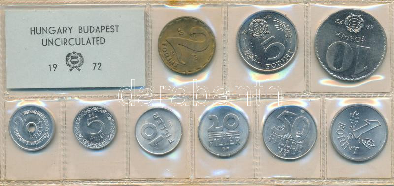 Leírás: 1972. 2f-10Ft (9xklf) érmés forgalmi sor fóliatokban T:1 patina
