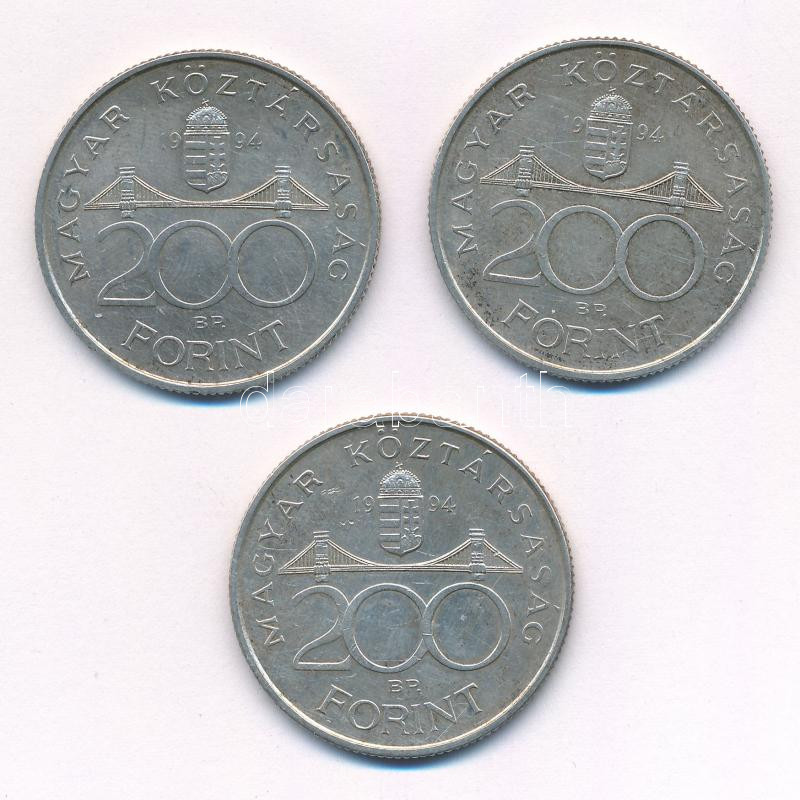 1994. 200Ft "Deák" Ag (3x) T:2 patina