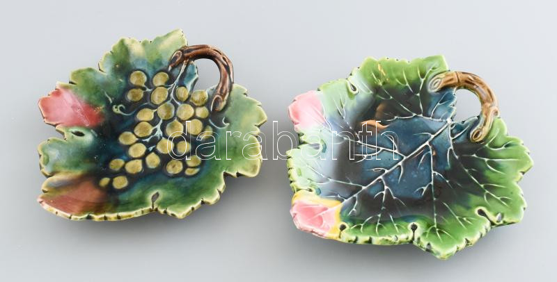Leírás: 2 db antik levél kínáló, jelzés nélkül, mázrepedésekkel, d: 17 cm