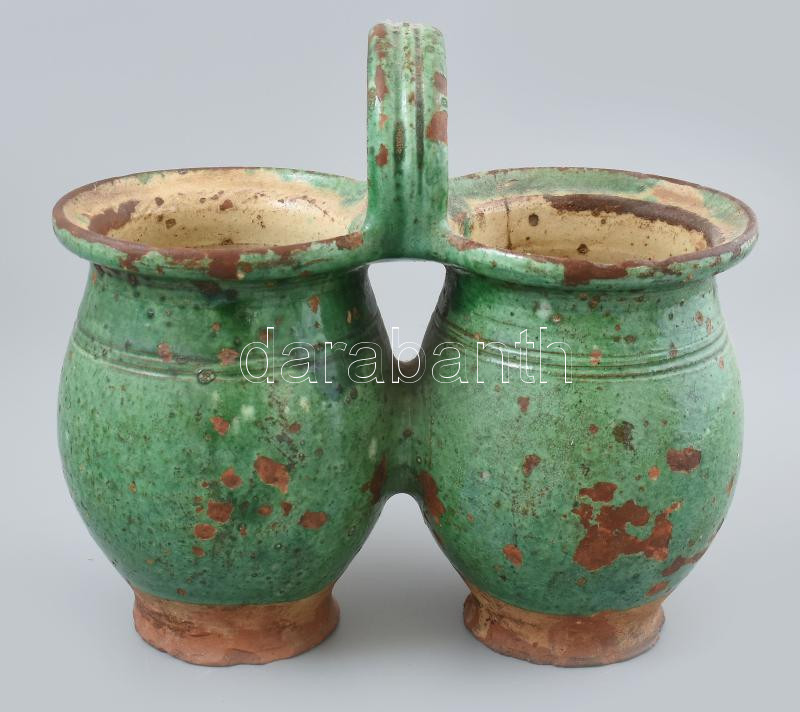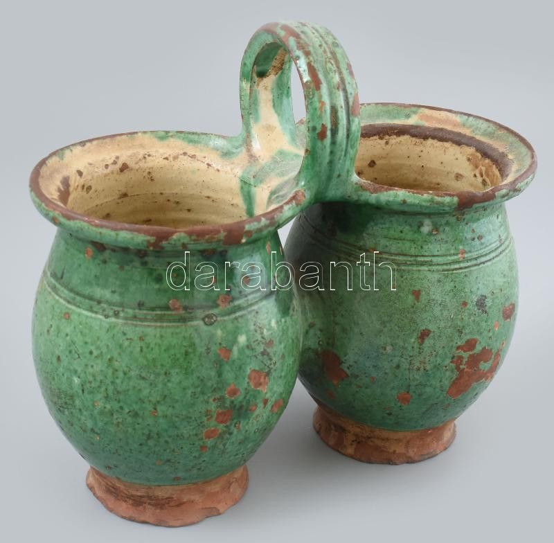 Leírás: Antik ikercsupor, cserép, sérülésekkel, m: 23 cm
