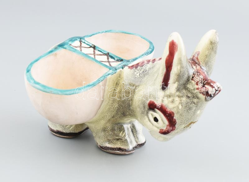 Leírás: Bodrogkeresztúri kerámia csacsi, fűszertartó (terv: Gál Béla). Jelzés nélkül, kis kopással, 14,5x12,5x10 cm