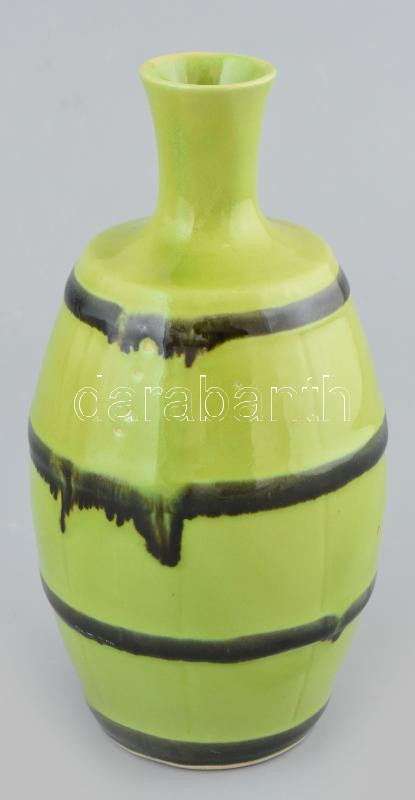 Leírás: FJ jelzéssel: Zöld váza. Kézzel festett, mázas kerámia Gyári mázhibával. 20 cm