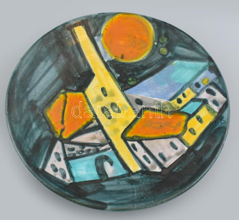 Leírás: Györgyei Zsuzsa: Retró kerámia tál, jelzett, hibátlan, d: 29 cm