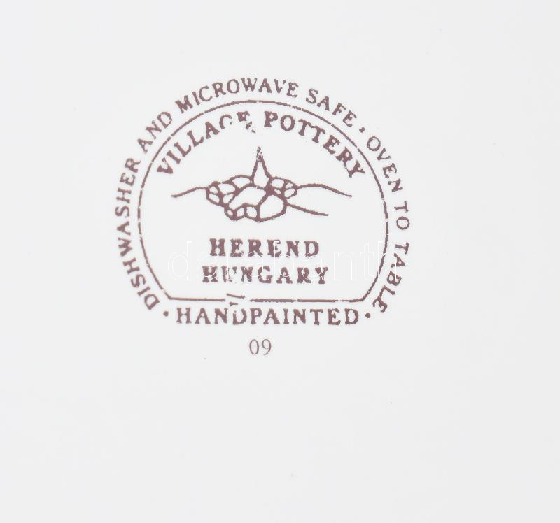 Leírás: Herendi Village Pottery, majolika cukortartó, kézzel festett kerámia. Jelzett. Kopásnyomokkal. D: 13 cm