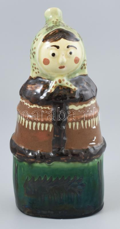 Leírás: Női formájú flaska. Mázas kerámia, jelzés nélkül. hibátlan 23 cm