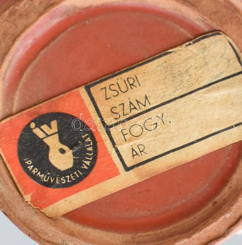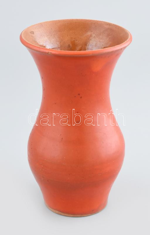 Leírás: Retró vörös váza, mázas kerémia, alján az Iparművészeti Vállalat zsűri címkéjével, m: 15 cm