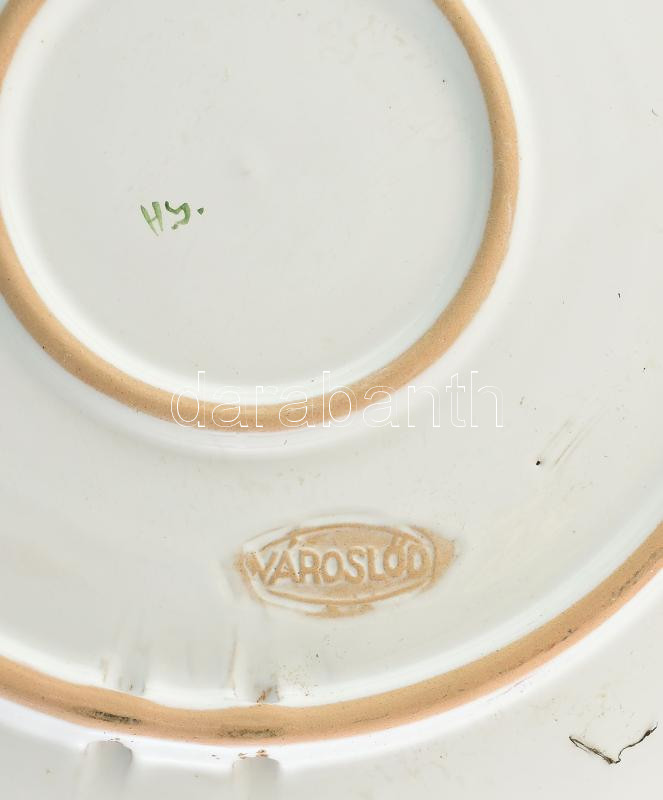 Leírás: Városlőd kerámiatál, mázlepattanásokkal, jelzett, d: 28 cm