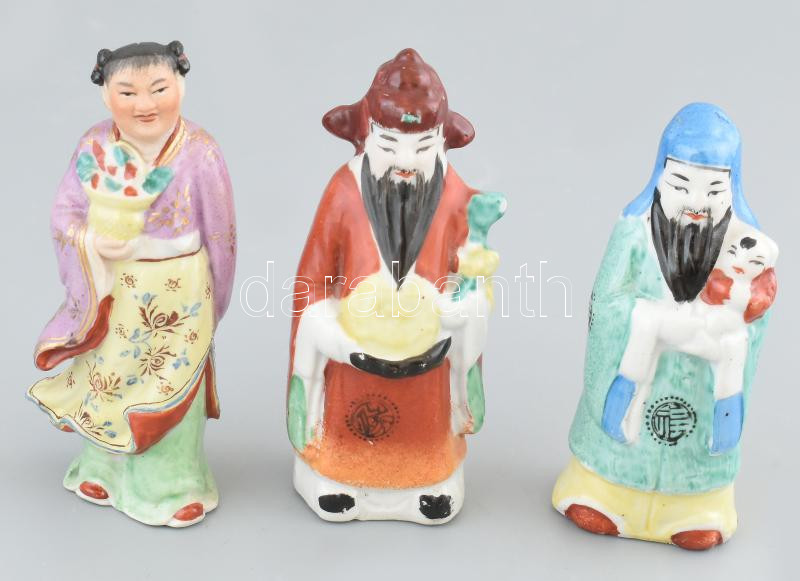 Leírás: 3 db kínai porcelán figura, jelzés nélkül, kis kopásnyomokkal, m: 11 cm