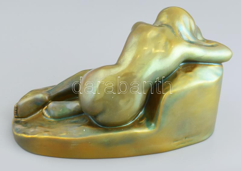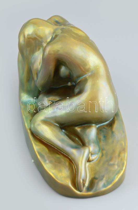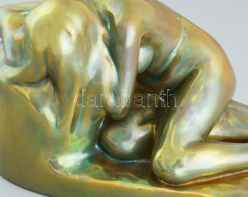 Leírás: Liipola Yrjö, formatervező (1881 - 1971) Zsolnay: Kétségbeesés. Eozin mázas porcelánfajansz. Mázrepedésekkel, kopásokkal, jelzett: Zsolnay öttornyos márkajelzés. 14 x 23 x 12 cm.