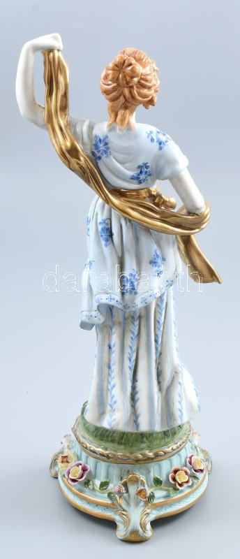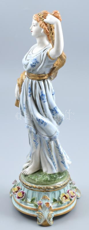 Leírás: Sevres jelzéssel francia női figura, kézzel festett porcelán, virágokon apró lepattanások, jelzett, m: 37 cm