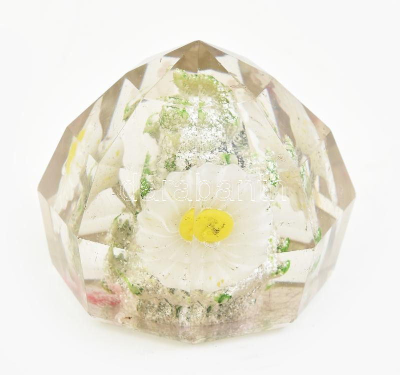 Virágos üveg levélnehezék, kopásnyomokkal, csorbával, d: 8 cm https://www.darabanth.com/hu/435-Gyorsarveres/435.0/Porcelan-keramia-uveg/Uvegtargyak~500007/Viragos-uveg-levelnehezek-kopasnyomokkal-csorbaval-d-8-cm~II2792781