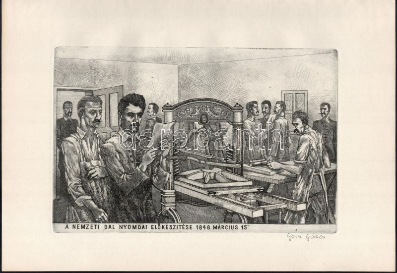 Gacs Gábor (1930-2019): A Nemzeti Dal nyomdai előkészítése, 1848 márci... https://www.darabanth.com/hu/436-Gyorsarveres/436.0/Festmenyek-es-grafikak/Festmenyek-es-grafikak~500001/Gacs-Gabor-1930-2019-A-Nemzeti-Dal-nyomdai-elokeszitese-1848-marcius-15-Petofi-Rezkar~II2832311