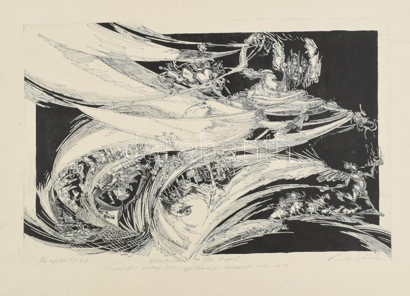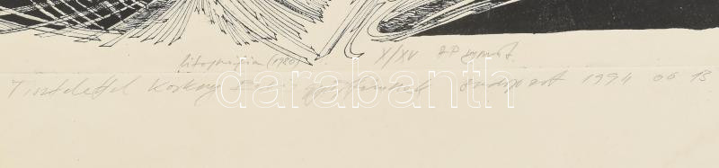 Kádas István (1941-): Ady. Litográfia, papír, jelzett, számozott (X/XV), művészpéldány AP jelzéssel. Kádas István autográf ajándékozási soraival. 30×46 cm