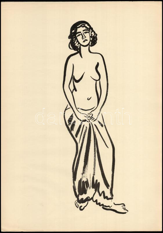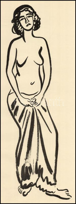 Leírás: Vaszary János (1867-1939): Női félakt. Ofszet, papír, jelzés nélkül. Lapszéli apró sérülésekkel. 42x30 cm
