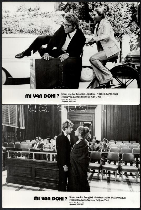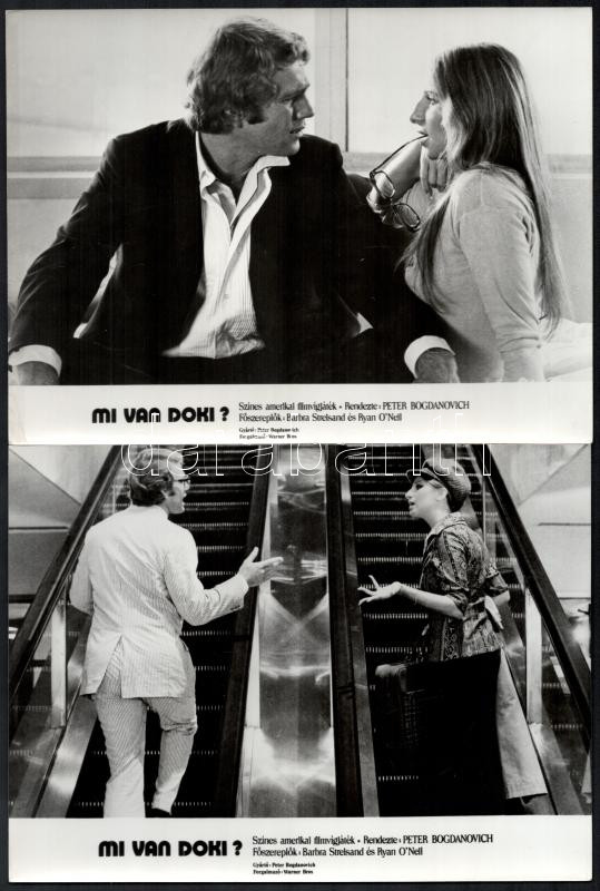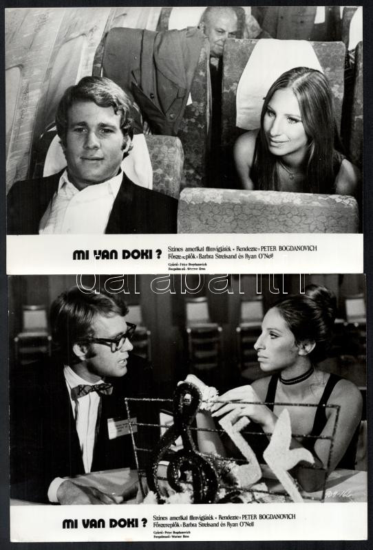 cca 1972 Barbara Streisand a ,,Mi van doki" című amerikai filmvígjáték jeleneteiben, 13 db vintage produkciós filmfotó, ezüst zselatinos fotópapíron, a használatból eredő (esetleges) kisebb hibákkal, 18x24 cm