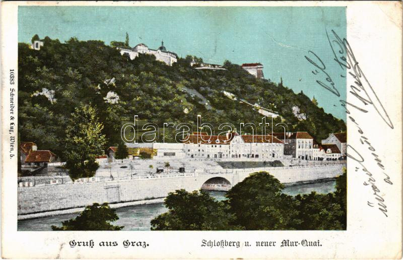 Leírás: 1902 Graz (Steiermark), Schloßberg u. neuer Mur-Quai / castle hill, riverside. Schneider & Lux (EK)