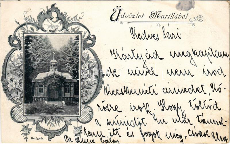 Leírás: 1902 Marilla, Marillavölgy, Marila; Belégzés kamra, inhaláló / spa, inhalation chamber. Art Nouveau, floral (vágott / cut)