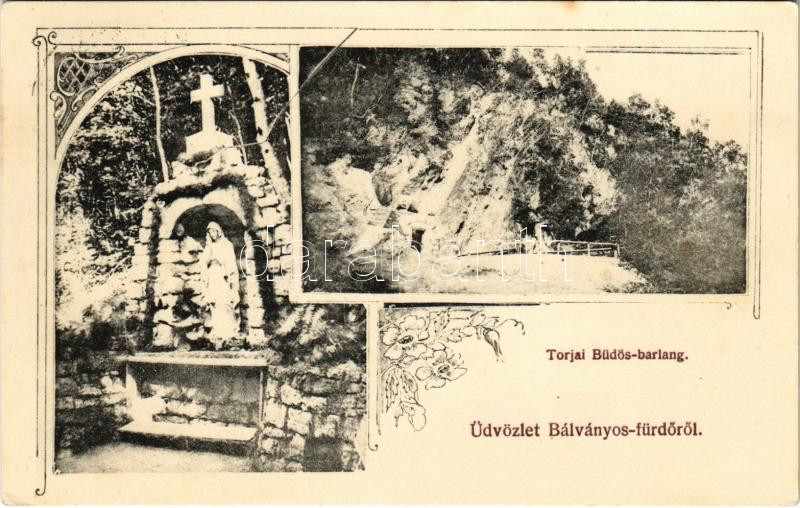 Leírás: 1910 Bálványosfürdő, Baile Balvanyos (Torja, Turia); Büdösbarlang / Höhle / Caverne. Art Nouveau, floral