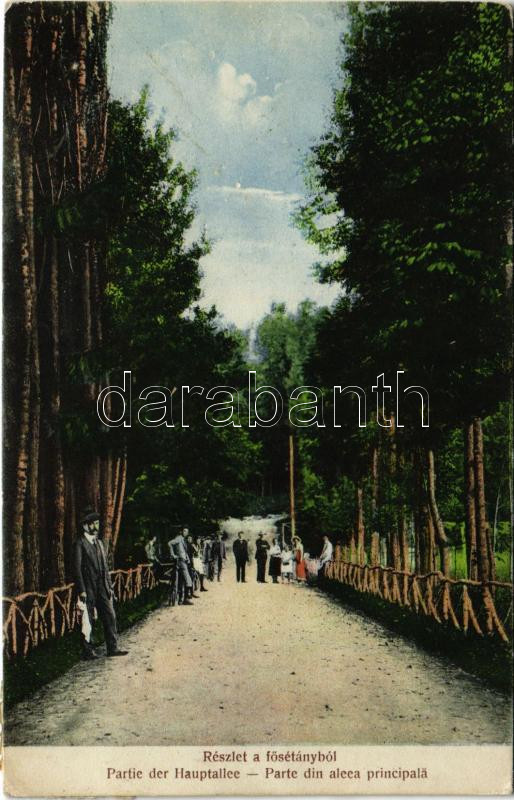 Leírás: 1914 Oláhszentgyörgy, Sangeorgiul Roman, Sangeorz-Bai; Részlet a fősétányból / Parte din alea principala / main promenade (EK)