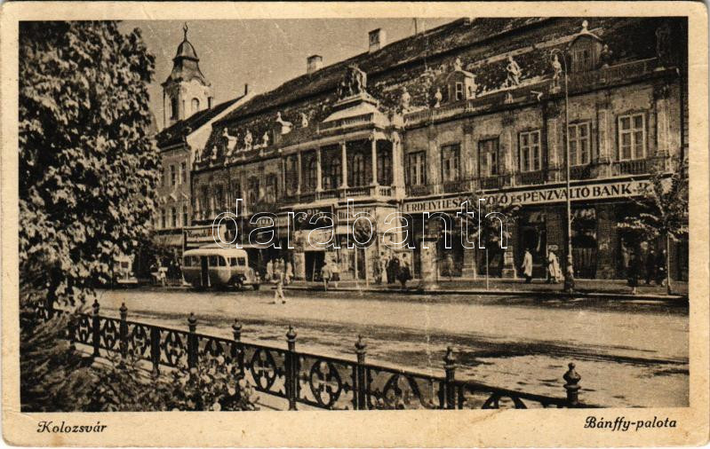 1946 Kolozsvár, Cluj; Bánffy palota, autóbusz, Erdélyi leszámoló és Pé... https://www.darabanth.com/hu/436-Gyorsarveres/436.0/Kepeslapok/Erdely~2000005/1946-Kolozsvar-Cluj-Banffy-palota-autobusz-Erdelyi-leszamolo-es-Penzvalto-bank-rt-il~II2835112