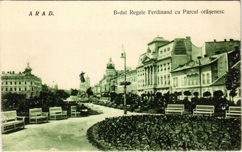Arad, B-dul Regele Ferdinand cu Parcul orasenesc / Ferdinánd király út... https://www.darabanth.com/hu/436-Gyorsarveres/436.0/Kepeslapok/Erdely~2000005/Arad-B-dul-Regele-Ferdinand-cu-Parcul-orasenesc-Ferdinand-kiraly-utja-Adriai-biztosito-va~II2826045