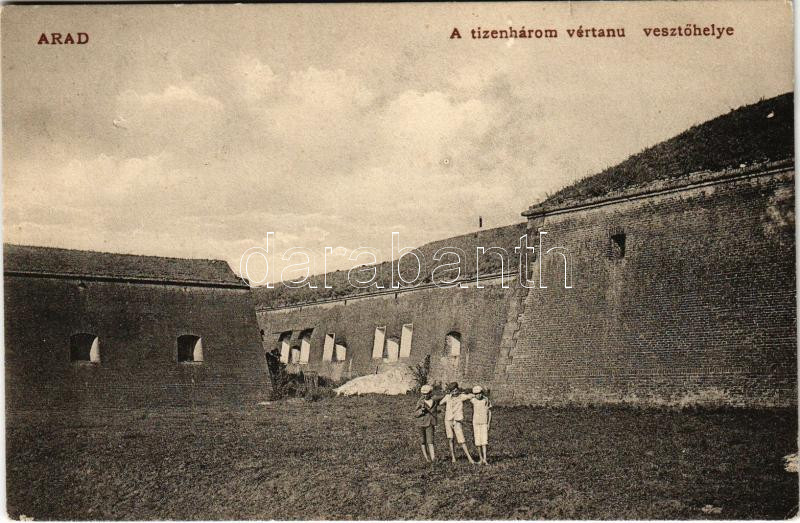 Arad, a tizenhárom vértanú vesztőhelye. Pichler Sándor kiadása / place of execution of the 13 martyrs of the Hungarian Revolution (1848-49) (lyuk / pinhole)