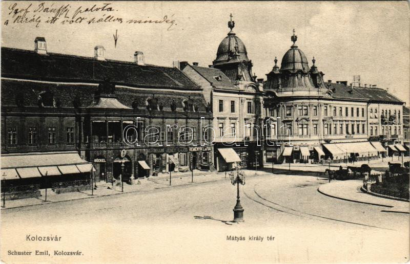 Kolozsvár, Cluj; Mátyás király tér, Böckel, Jeney Lajos, Reményik L. é... https://www.darabanth.com/hu/436-Gyorsarveres/436.0/Kepeslapok/Erdely~2000005/Kolozsvar-Cluj-Matyas-kiraly-ter-Bockel-Jeney-Lajos-Remenyik-L-es-fiai-uzlete-Schust~II2797532