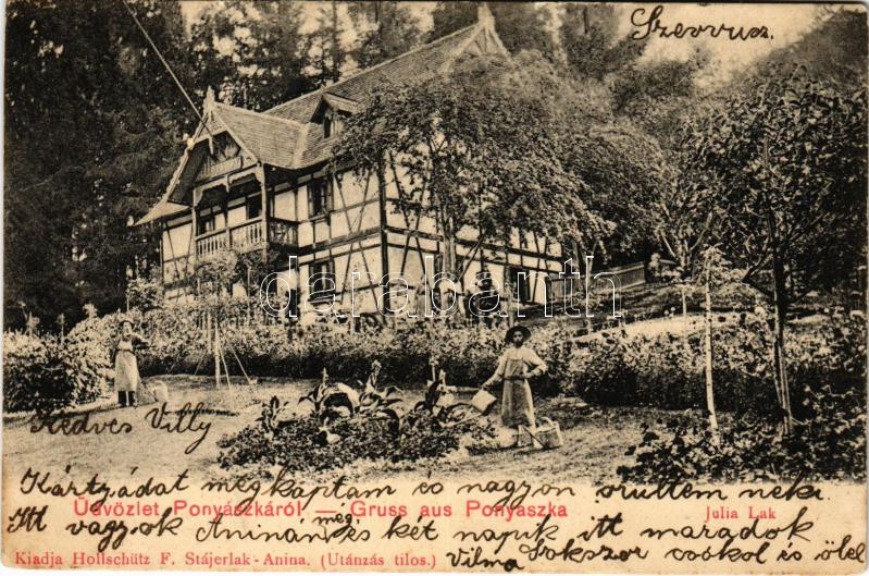 Leírás: Ponyászka, Poneasca (Bozovics, Bozovici); Júlia lak. Hollschütz F. kiadása / villa