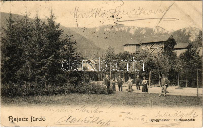 1903 Rajecfürdő, Rajecz-fürdő, Rajecké Teplice; Gyógyház tér / Curhaus... https://www.darabanth.com/hu/436-Gyorsarveres/436.0/Kepeslapok/Felvidek~2000006/1903-Rajecfurdo-Rajecz-furdo-Rajecke-Teplice-Gyogyhaz-ter-Curhausplatz-spa-square-E~II2824825