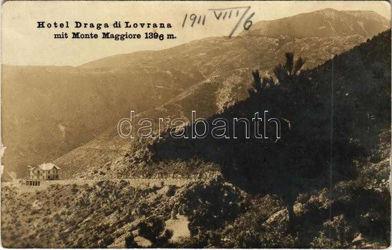 Lovran, Lovrana; Hotel Draga di Lovrana, Monte Maggiore 1396 m. photo https://www.darabanth.com/hu/436-Gyorsarveres/436.0/Kepeslapok/Horvatorszag~2000008/Lovran-Lovrana-Hotel-Draga-di-Lovrana-Monte-Maggiore-1396-m-photo~II2830611
