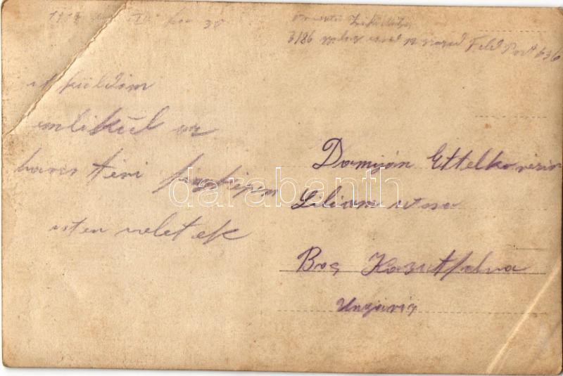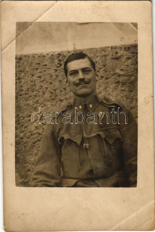 1917 Osztrák-magyar katona / WWI K.u.k. Hungarian military, soldier. p... https://www.darabanth.com/hu/436-Gyorsarveres/436.0/Kepeslapok/Katonai~2000032/1917-Osztrak-magyar-katona-WWI-Kuk-Hungarian-military-soldier-photo-EB~II2836071