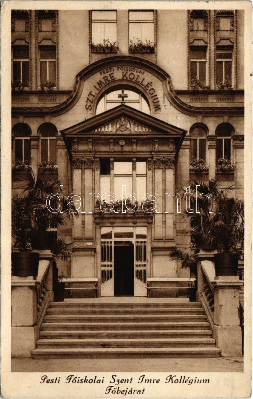 1931 Budapest V. Pesti Főiskolai Szent Imre Kollégium főbejárata (Rb) https://www.darabanth.com/hu/436-Gyorsarveres/436.0/Kepeslapok/Magyarorszag~2000004/1931-Budapest-V-Pesti-Foiskolai-Szent-Imre-Kollegium-fobejarata-Rb~II2825582