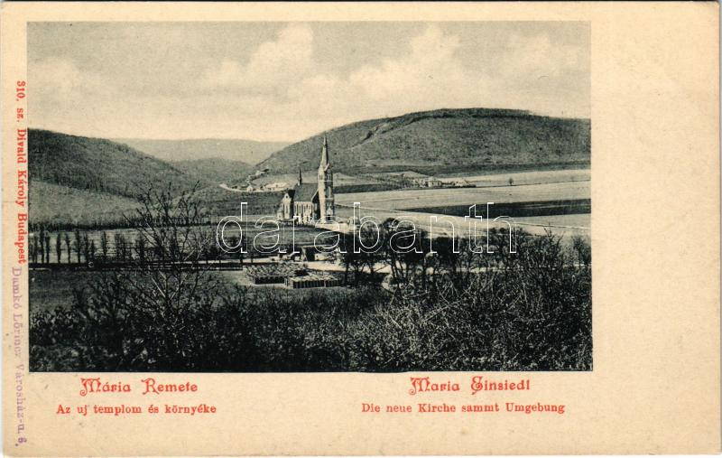 Leírás: Budapest II. Máriaremete, Mária-Remete; Új templom és környéke. Divald Károly 310.
