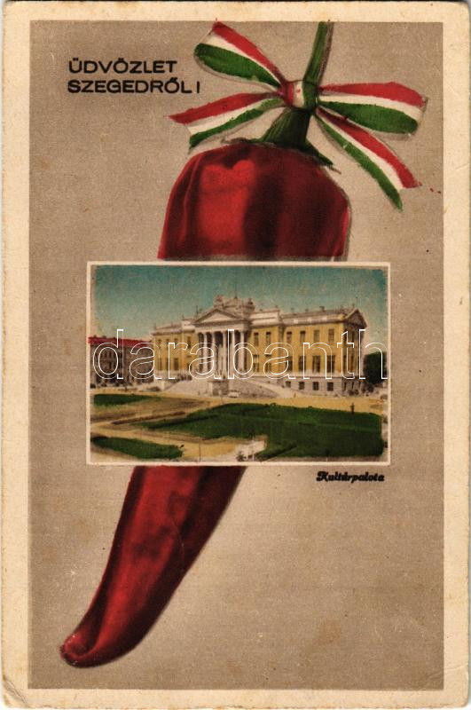 Szeged, Kultúrpalota. Montázs paprikával, Bölcsházy László kiadása (EK... https://www.darabanth.com/hu/436-Gyorsarveres/436.0/Kepeslapok/Magyarorszag~2000004/Szeged-Kulturpalota-Montazs-paprikaval-Bolcshazy-Laszlo-kiadasa-EK~II2835273