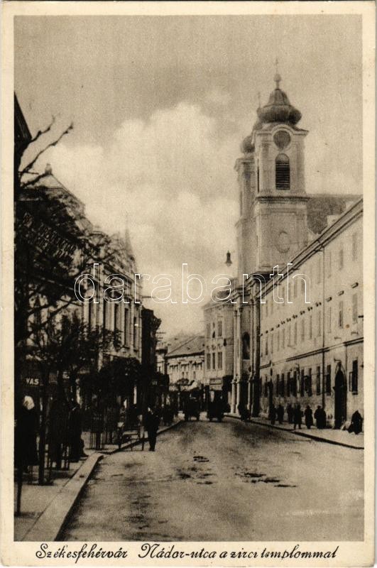 Székesfehérvár, Nádor utca a zirci templommal https://www.darabanth.com/hu/436-Gyorsarveres/436.0/Kepeslapok/Magyarorszag~2000004/Szekesfehervar-Nador-utca-a-zirci-templommal~II2539642