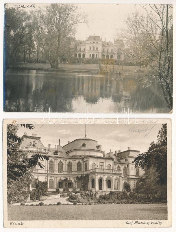 Tóalmás, Andrássy kastély - 2 db régi képeslap https://www.darabanth.com/hu/436-Gyorsarveres/436.0/Kepeslapok/Magyarorszag~2000004/Toalmas-Andrassy-kastely-2-db-regi-kepeslap~II2829984