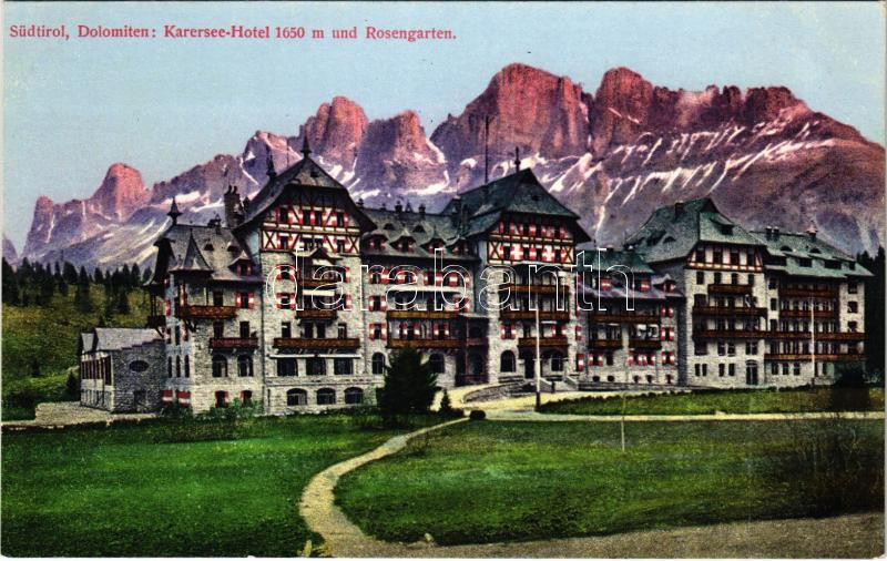 Lago di Carezza, Karersee (Südtirol); Karersee-Hotel und Rosengarten /... https://www.darabanth.com/hu/436-Gyorsarveres/436.0/Kepeslapok/Olaszorszag~2000069/Lago-di-Carezza-Karersee-Sudtirol-Karersee-Hotel-und-Rosengarten-hotel~II2837027