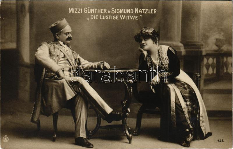 Mizzi Günther & Sigmund Natzler "Die lustige Witwe" https://www.darabanth.com/hu/436-Gyorsarveres/436.0/Kepeslapok/Szinesz~2000056/Mizzi-Gunther-Sigmund-Natzler-Die-lustige-Witwe~II2836893