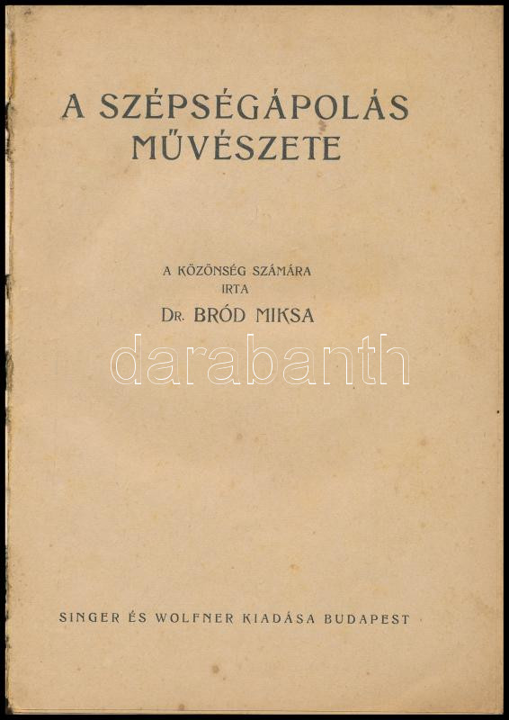 Bród Miksa: A szépségápolás művészete. Bp.,[1921],Singer és Wolfner. A... https://www.darabanth.com/hu/436-Gyorsarveres/436.0/Konyvek/Konyvek-Egyeb-ritkasagok~1000023/Brod-Miksa-A-szepsegapolas-muveszete-Bp-1921-Singer-es-Wolfner-A-borito-Vegh-GusztC3~II2827755