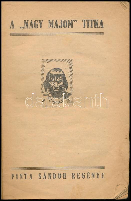 Finta Sándor: A "nagy majom" titka. Bp., é.n. (1943), Forrás. 171p. A cÃmlapkép SebÅ‘k Imre műve. Kiadói illusztrált papÃrkötésben, sérült gerinccel és borÃtóval, elsÅ‘ néhány lap kissé sérült és kissé foltos, utolsó néhány lapon lapszéli, szöveget nem érintÅ‘ szakadásokkal. Ritka ponyva!