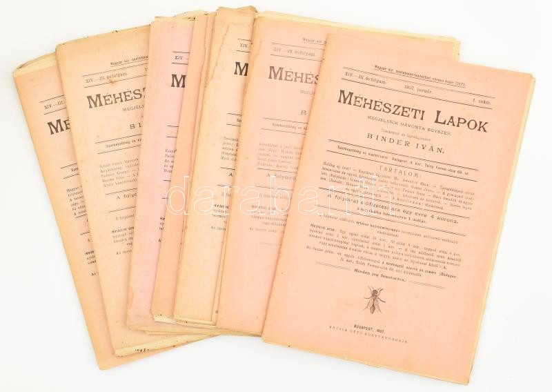 1907 Méhészeti Lapok. XIV. - III. évf. 1-12. sz. Teljes évfolyam. Szer... https://www.darabanth.com/hu/436-Gyorsarveres/436.0/Konyvek/Konyvek-Konyha-es-kert~1000012/1907-Meheszeti-Lapok-XIV-III-evf-1-12-sz-Teljes-evfolyam-Szerk-Binder-Ivan-Kozte-f~II2829194