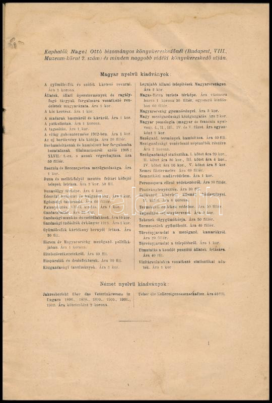 Leírás: Csörgey Titus: Madárvédelem a kertben. Bp., 1913., Pallas, 19 p. Kiadói papírkötés, foltos.