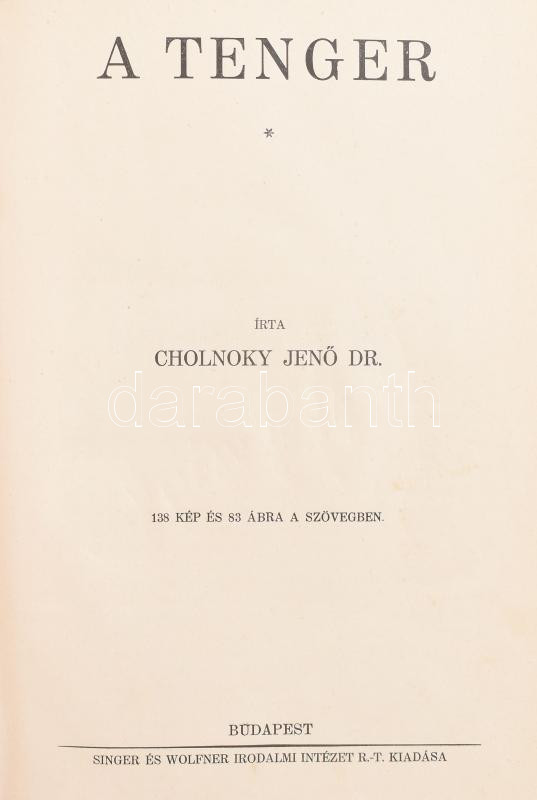 Cholnoky Jenő: A tenger. Bp., 1931, Singer és Wolfner. Kiadói egészvás... https://www.darabanth.com/hu/436-Gyorsarveres/436.0/Konyvek/Konyvek-Termeszettudomany-medicina~1000014/Cholnoky-Jeno-A-tenger-Bp-1931-Singer-es-Wolfner-Kiadoi-egeszvaszon-kotes-kopottas-al~II2827870